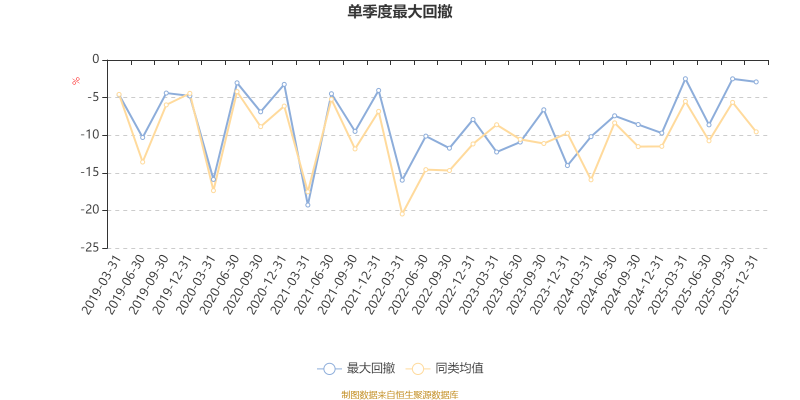 通过所选区间该基金净值增长率分位图,可以观察该基金与同类基金业绩比较情况。图为坐标原点到区间内某时点的净值增长率在同类基金中的分位数。
